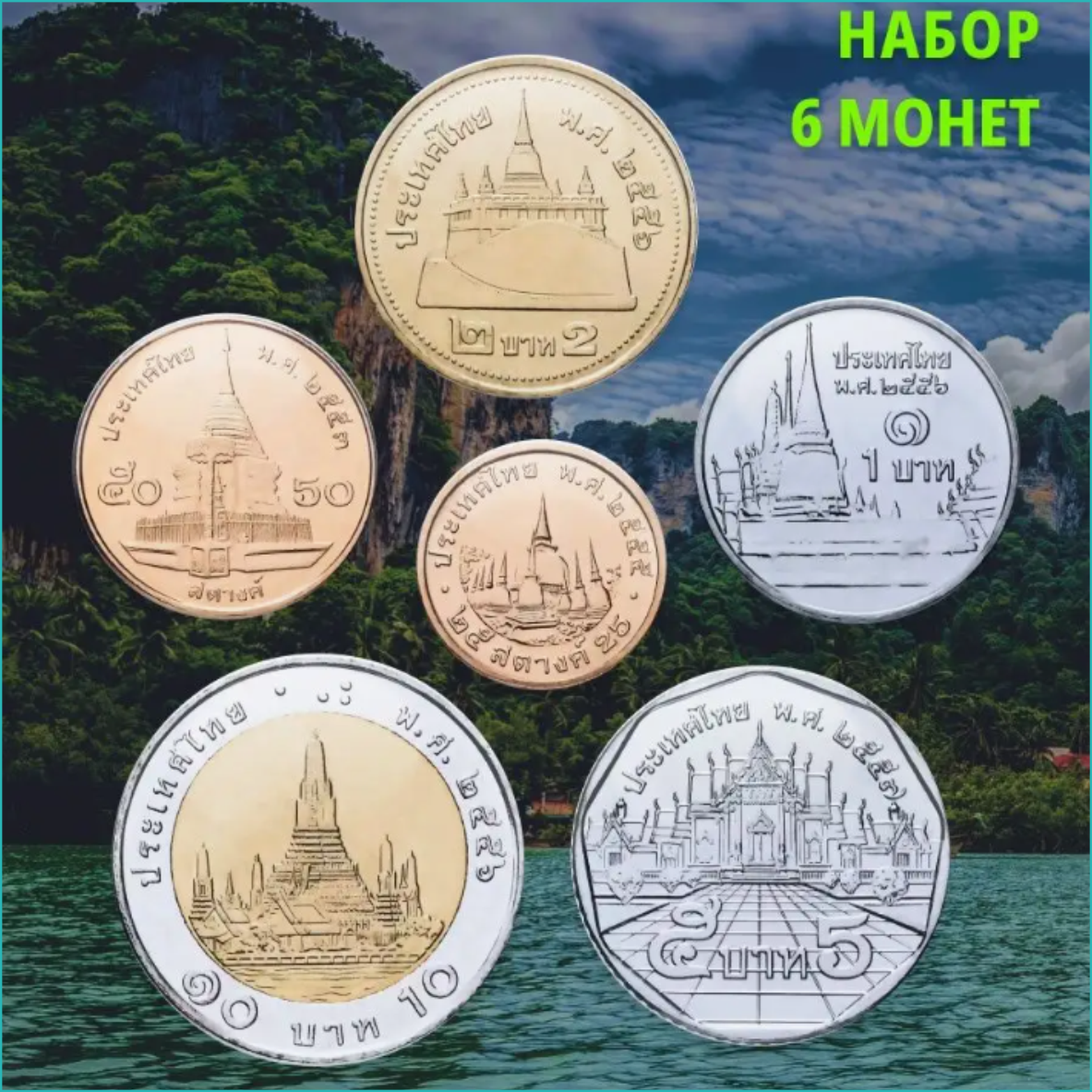 - Дизайн: Монеты украшены изображениями королей Таиланда, таких как король Рама IX и Рама X, а также национальными символами, культурными памятниками и значимыми архитектурными сооружениями.